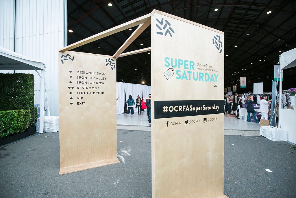 I was fortunate to come back and work on one of my favorite events I’ve been a part of, Super Saturday LA. Same venue, same high-end garage sale with all net proceeds going to ovarian cancer research, and yet it was so different. We went with a natural wood design, QVC live-broadcasted the entire event (read: large stage, production tractor trailers, and film permits), and we brought in a 50x100 VIP catering tent, to name a few new challenges. That’s what makes it all fun. We took what we learned in 2015 and were able to enhance the experience even more for the 2016 event.